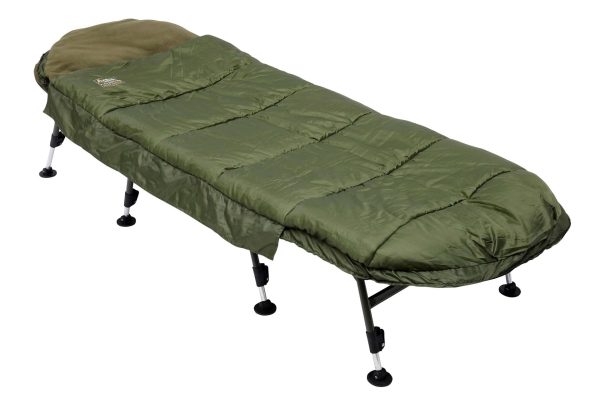 Stworzyliśmy zestawy składające się z naszych konkurencyjnych łóżek Avenger posiadających 6 lub 8 nóg oraz 3-sezonowego śpiwora Avenger. Nazwaliśmy tę ofertę Systemem Spania Avenger. Śpiwór jest pewnie zamocowany do łóżka za pomocą mocnego suwaka znajdującego się na całym jego obwodzie. Taki system mocowania jest nie tylko schludny i bezpieczny, ale pozwala także na łatwy demontaż w celu czyszczenia. Wielowarstwowa konstrukcja wypełnienia włóknami kanalikowymi oraz obszycie wnętrza ciepłym flisem gwarantuje bardzo dobrą izolację termiczną i funkcjonalność, a także wysoki komfort. Z zewnątrz system jest obszyty miękką w dotyku, bardzo odporną i nieszeleszczącą tkaniną z impregnowanego poliestru. Dwa wzmocnione zamki ułatwiają wchodzenie i wychodzenie ze śpiwora. Oba suwaki pozwalają na wzajemne ich zblokowanie, co zabezpiecza przed nieumyślnym rozpięciem śpiwora i wypadnięciem z niego. Patki zakrywające zamki chronią przed podmuchami wiatru i wydostawaniem się ciepła ze śpiwora, dzięki czemu chłód nie zmąci Twojego snu.