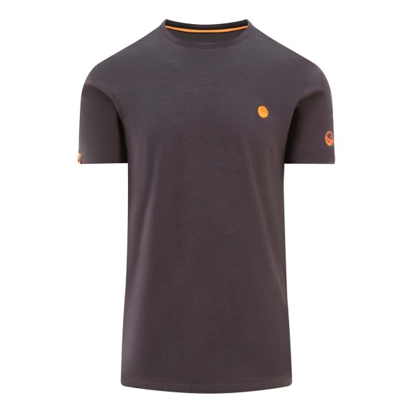 Lekka koszulka w kolorze grafitowym z krótkim rękawem, z małym haftowanym pomarańczowym logo Guru z przodu i dużą grafiką Aventus Guru z tyłu oraz logo Guru na rękawie. Ma również Zero-90 u podstawy z tyłu.