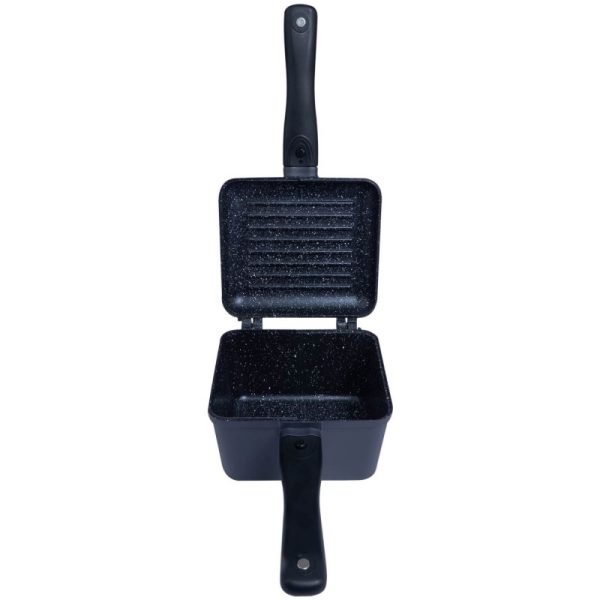 Patelnia grillowa działa jak pokrywka na głębszej patelni i można ją odłączyć, aby zrobić z niej osobną patelni, umożliwiając jednoczesne gotowanie dwóch porcji jedzenia. Patelnia grillowa jest również wymienna z RidgeMonkey Connect Sandwich Toster Granite Edition.