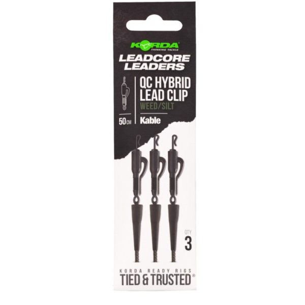 Leadcore Korda Kable Leadcore Leader Hybrid Lead Clip QC Swivel Weed 50cm