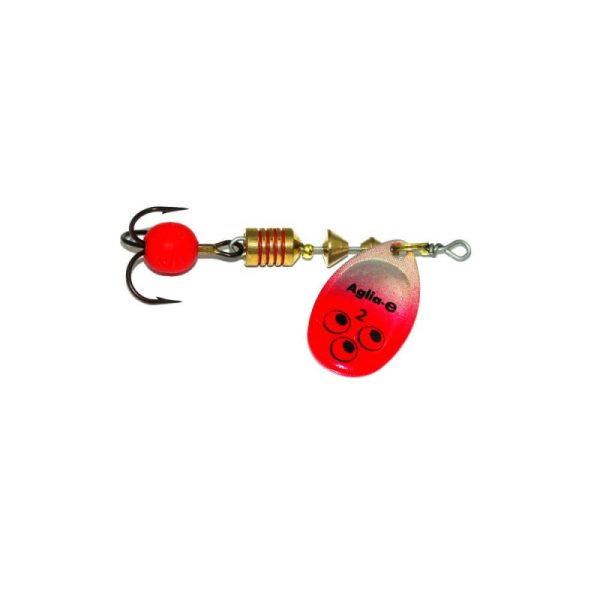 Projektując Aglię -e, wykorzystano zjawisko fluorescencji pod wpływem niewidzialnych dla ludzkiego oka promieni UV (ultrafioletowych). Paletka Aglii, pokryta została powłoką zawierającą pigment czuły na promienie UV, dzięki czemu na dużych głębokościach Aglia -e odbijając promienie UV, jest znakomicie widoczna i prowokuje drapieżnika do ataku i to w chwili, gdy inne przynęty stają się praktycznie niezauważalne. Na kotwiczce umieszczona jest kulka wykonana z miękkiego tworzywa, która imituje najbardziej pożądany przez ryby wszystkich gatunków pokarm, czyli ikrę. Kulka ta również odbija promienie UV i działa na dużych głębokościach jak reflektor wskazujący drapieżnikom drogę do celu.