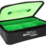 Zestaw pojemników EVA składający się z dużej zamykanej na suwak bazy, długiego korytka na pellet do metody i kompletu 3 mniejszych pojemników na przynęty. Super kompaktowy komplet, który pozwala wygodnie wędkować z użyciem podajników zanętowych.