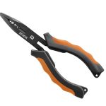 Delphin BENDIX to uniwersalne szczypce z zagiętą końcówką do usuwania ciężkich do wyjęcia kotwic i haczyków z szczęk drapieżników. Ich długość wynosi 16 cm. Wewnątrz szczypce mają dobrą powierzchnię chwytną nawet dla dużych dużych haków i kotwic. Ponadto mogą przecinać stalowe i wolframowe przypony i są wyposażone w część przeznaczoną do zaciskania cybantów i tulejek. Wykonane są ze stali o wysokiej zawartości węgla, a oba uchwyty mają pomarańczowo-czarny kolor, aby zawsze były widoczne. Oba uchwyty mają otwory na sznurki. Dzięki szczypcom BENDIX będziesz przygotowany na każdą sytuację podczas łowienia drapieżnych ryb!