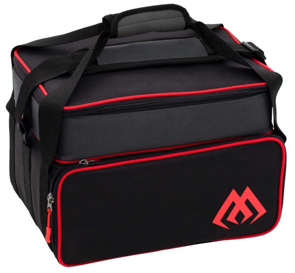 Średnia torba z pudełkami, paskiem na ramię i rączką, podzielona na dwie komory główne. Górna część idealna sprawdzi się do przechowywania większych przedmiotów, dolna komora wyposażona w pudełka dedykowana jest do przechowywania akcesoriów oraz przynęt.